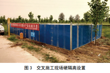 (3)一級硬隔離布控。安全邊界采用鋼管腳手架?chē)鷻诨虿输摪鍑鷵醯仍O置劃定隔離,隔離上沿距離地面高度不低于2 m,顏色為藍色或紅色(圖 2),F場(chǎng)搭設看護帳篷和監控攝像等人防、技防設施(圖 3)。